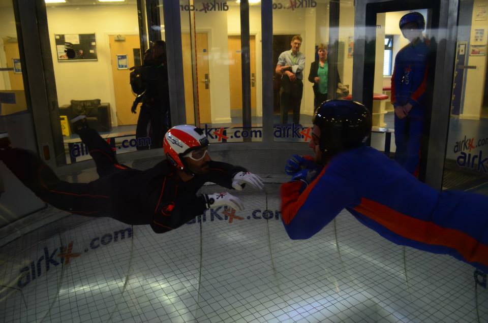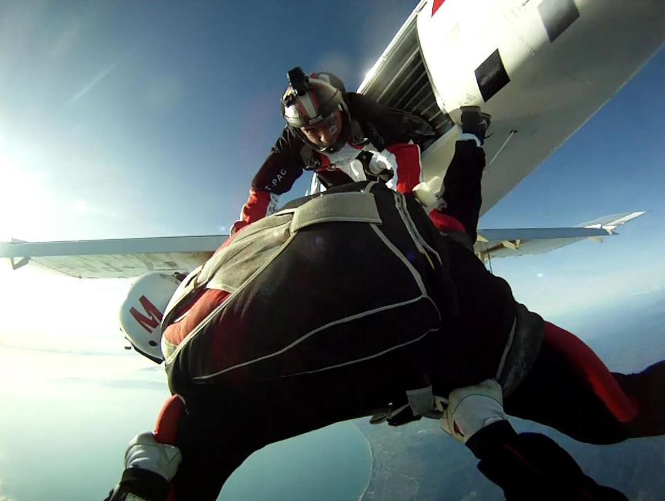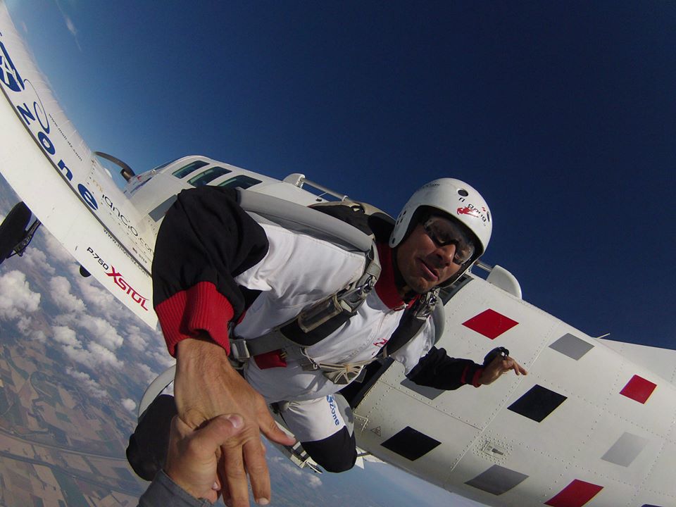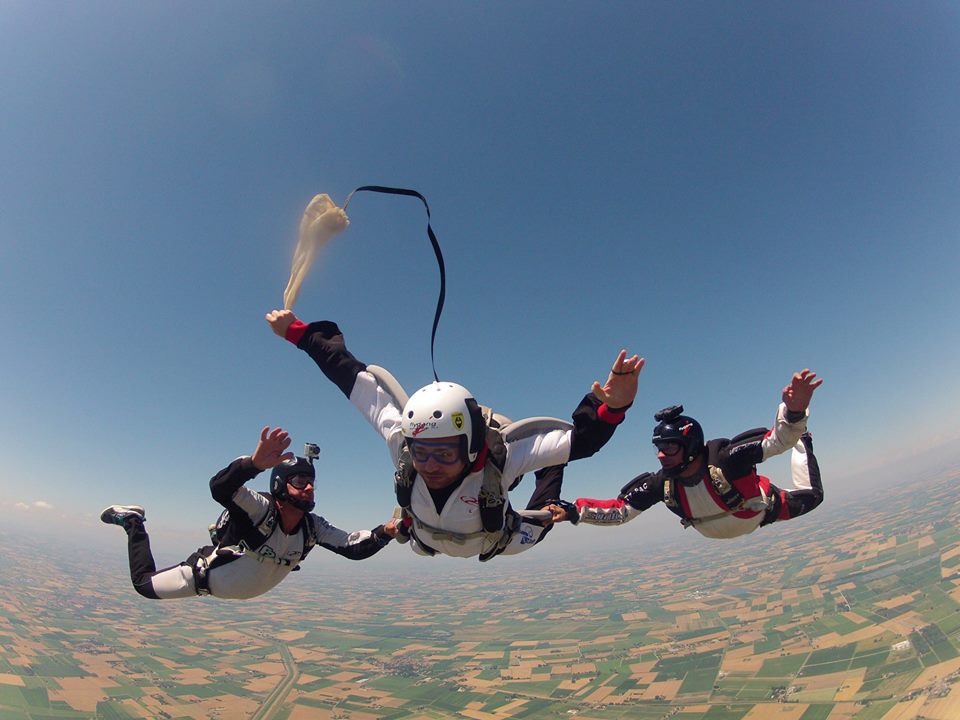 caduta libera da 4000 metri con 2 istruttori che lo tengono saldamente in